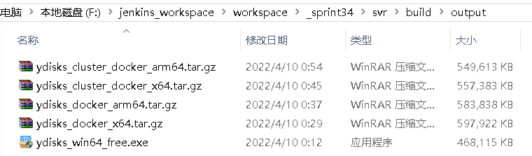 以悦库流水线为例,执行完成后最终会生成5个不同版本的服务端安装包:
